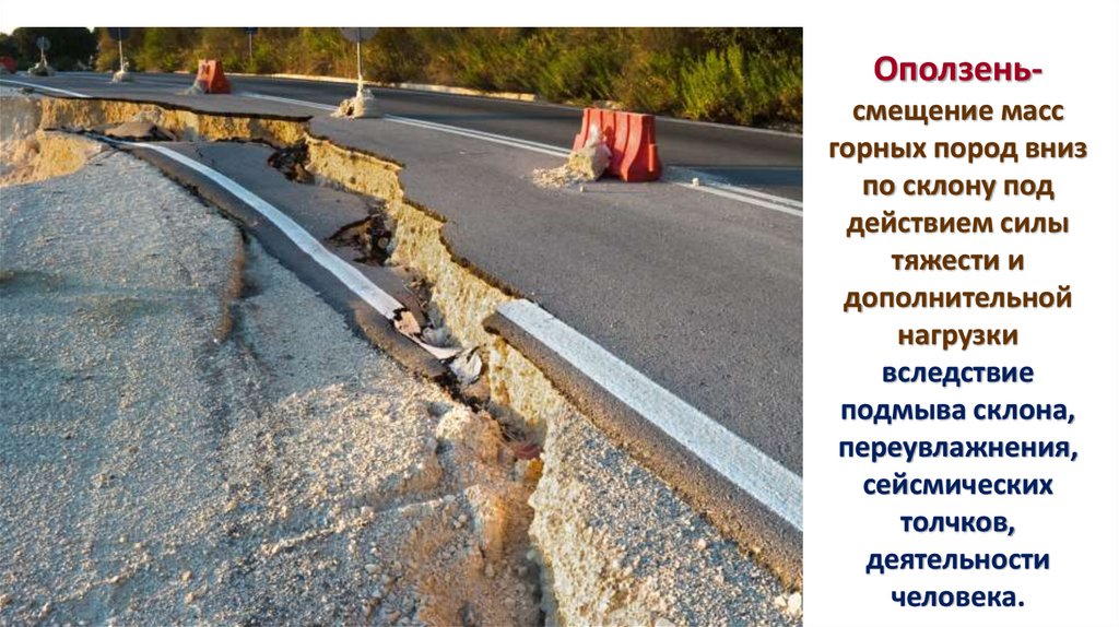 Оползеньсмещение массгорных пород вниз