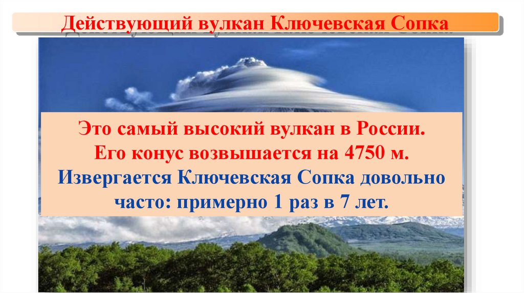 Действующий вулкан Ключевская СопкаЭто самый высокий вулкан в России.