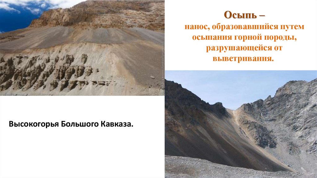 Осыпь –нанос, образовавшийся путем