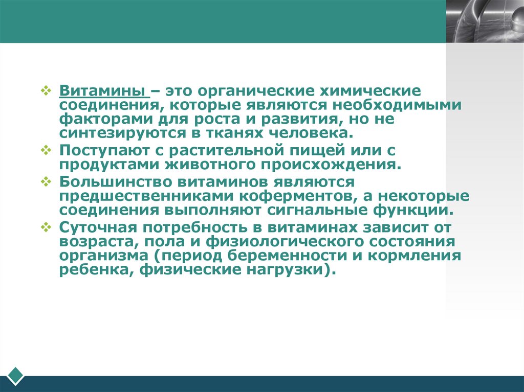 LOGOВитамины – это органические химические