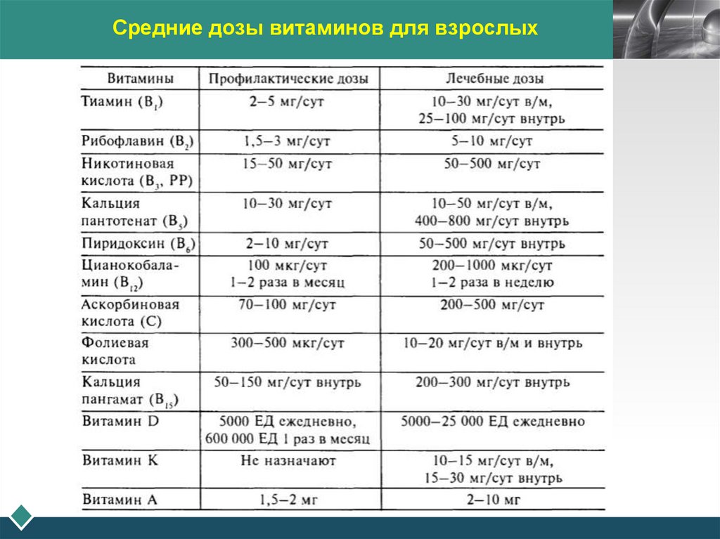 Средние дозы витаминов для взрослыхLOGO