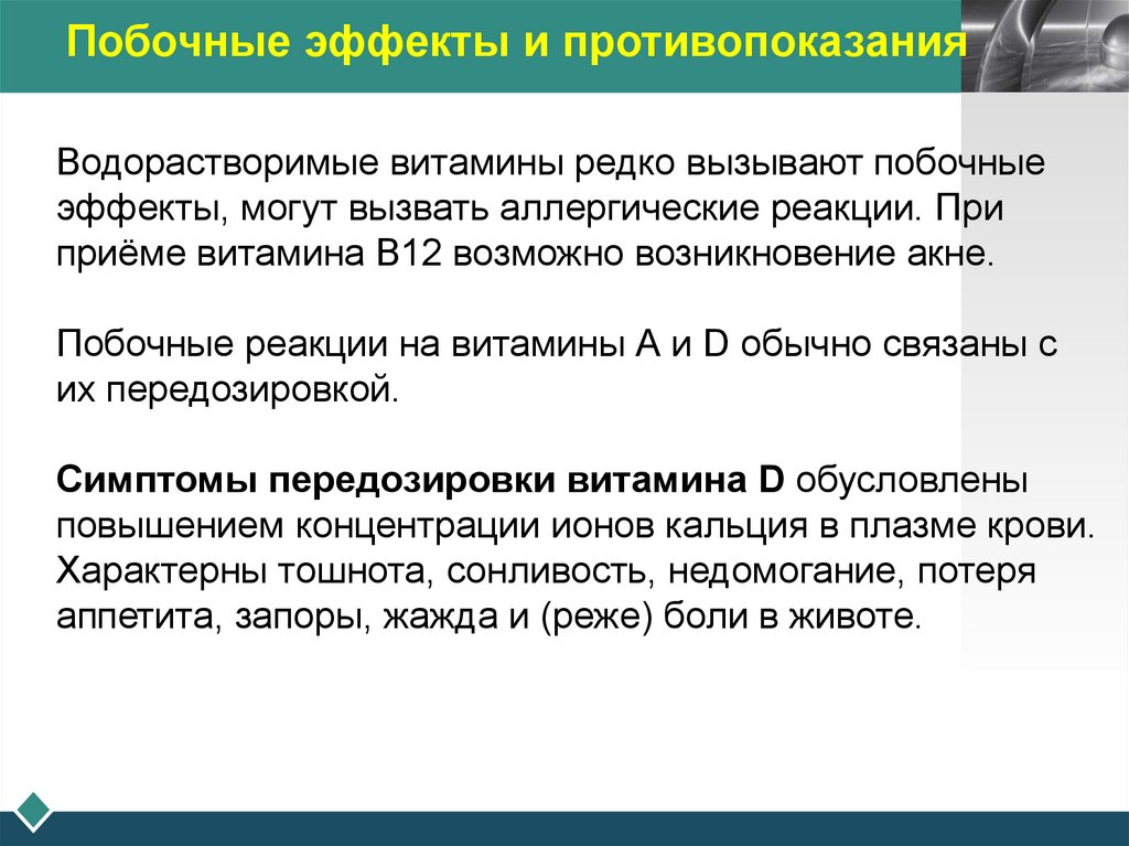 Водорастворимые витамины редко вызывают побочные