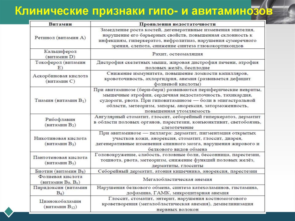 витаминной недостаточности, вплоть до