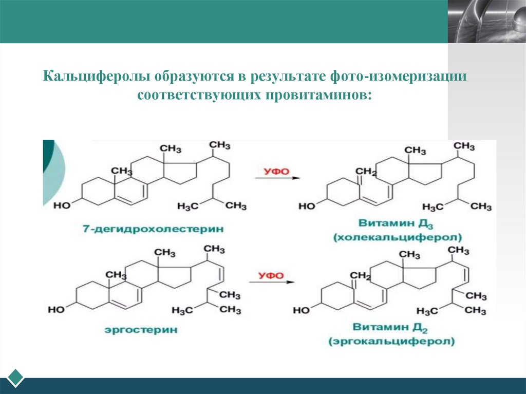 • Эргокальциферол подвергается изомеризации под