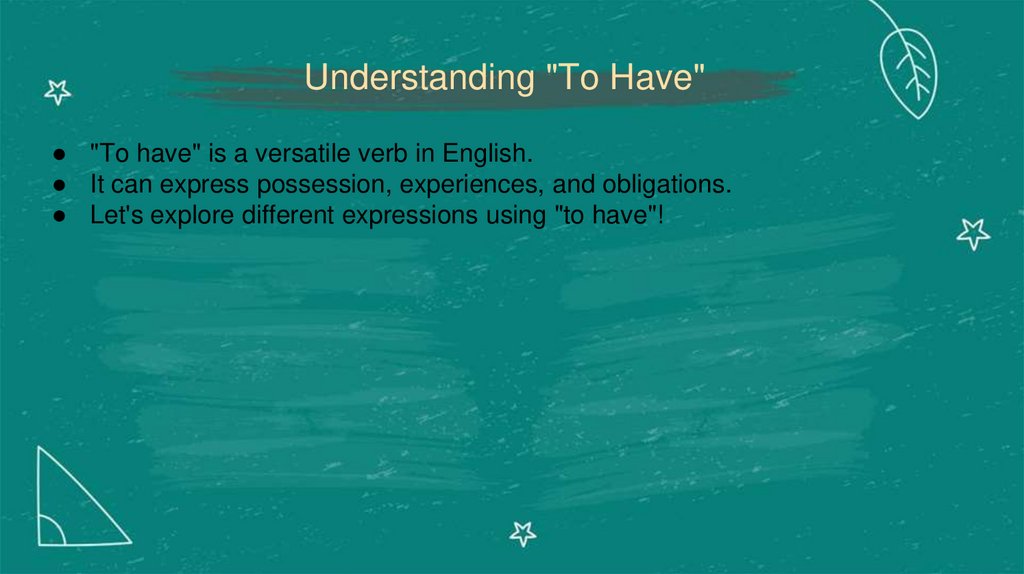 Understanding "To Have"● "To have" is a versatile verb in English.