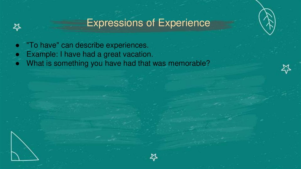 Expressions of Experience● "To have" can describe experiences.
