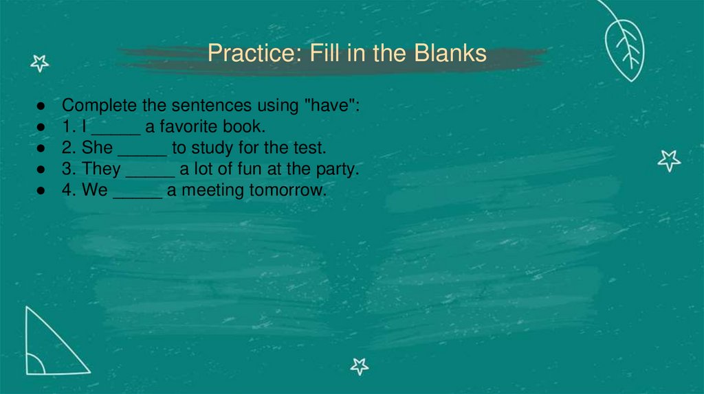 Practice: Fill in the BlanksComplete the sentences using "have":