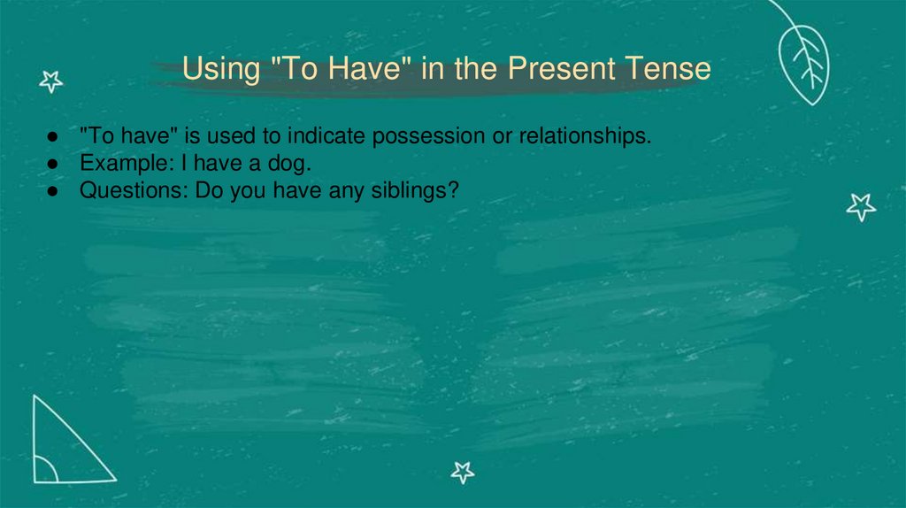 Using "To Have" in the Present Tense● "To have" is used to indicate possession or relationships.