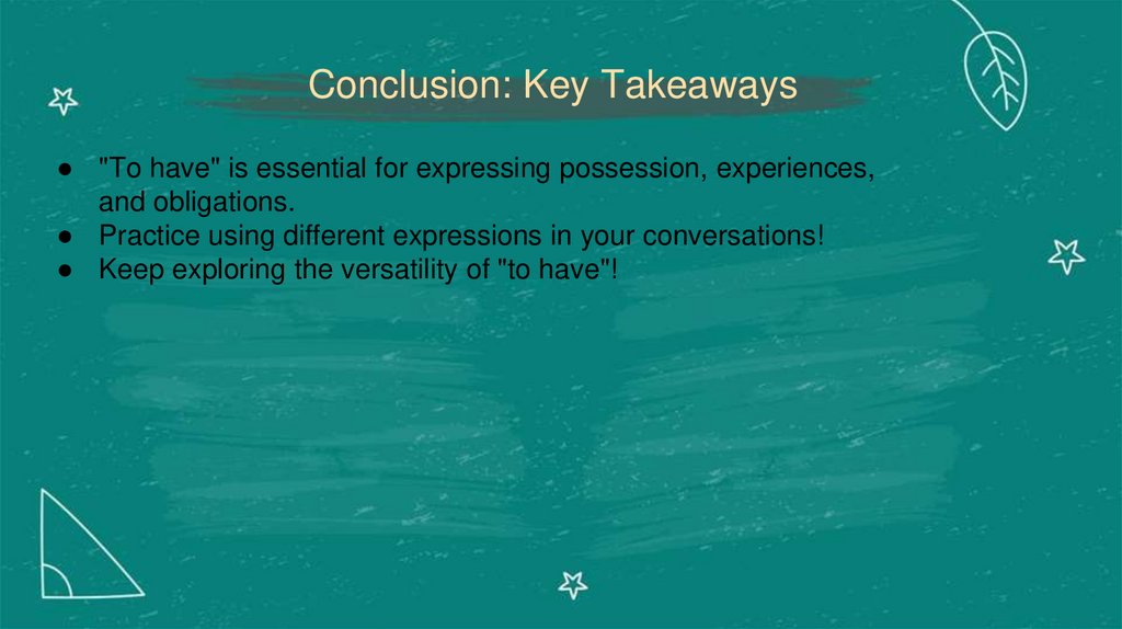 Conclusion: Key Takeaways● "To have" is essential for expressing possession, experiences,