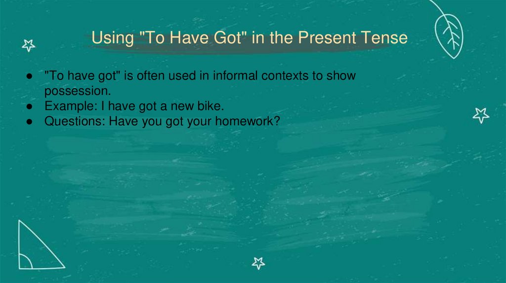 Using "To Have Got" in the Present Tense● "To have got" is often used in informal contexts to show