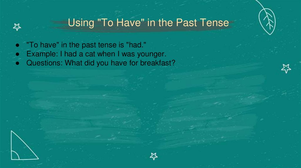 Using "To Have" in the Past Tense● "To have" in the past tense is "had."