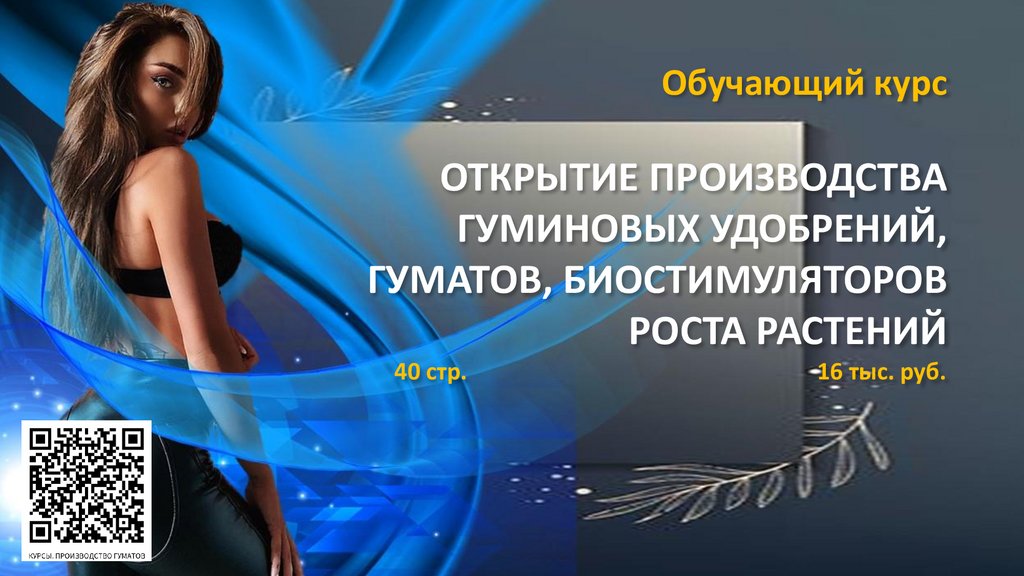 Обучающий курс ПРОИЗВОДСТВО НАТУРАЛЬНЫХ ГУМИНОВЫХ УДОБРЕНИЙ, ГУМАТОВ, БИОСТИМУЛЯТОРОВ РОСТА РАСТЕНИЙ 40 стр