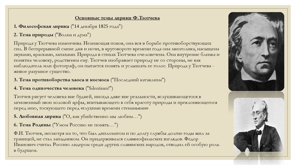 Основные темы лирики Ф.Тютчева1. Философская лирика ("14 декабря 1825 года")