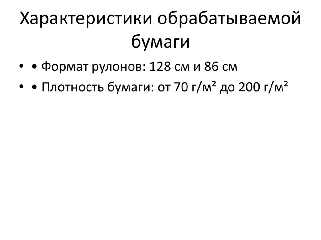 Характеристики обрабатываемойбумаги