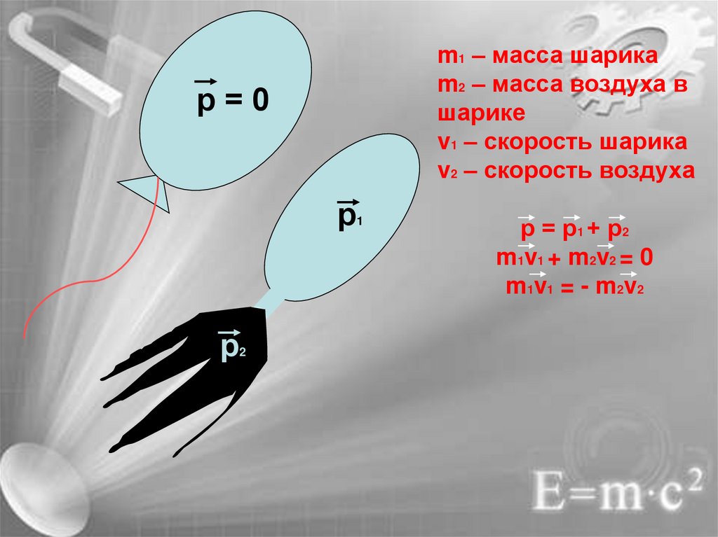 m1 – масса шарикаm2 – масса воздуха в