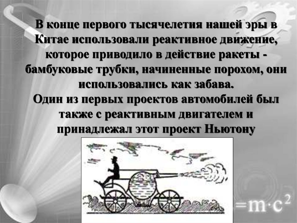 В конце первого тысячелетия нашей эры вКитае использовали реактивное движение,