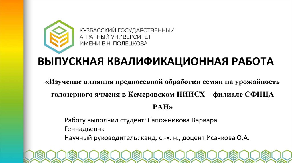 ВЫПУСКНАЯ КВАЛИФИКАЦИОННАЯ РАБОТА«Изучение влияния предпосевной обработки семян на урожайность