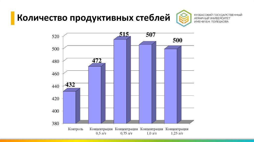 Количество продуктивных стеблей515