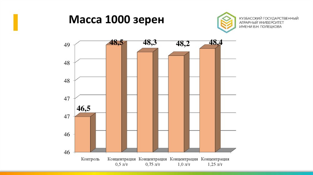Масса 1000 зерен48,5