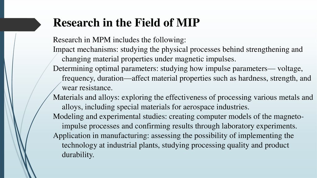 Modeling and experimental studies: creating computer models of the magnetoimpulse processes and confirming results through laboratory experiments.