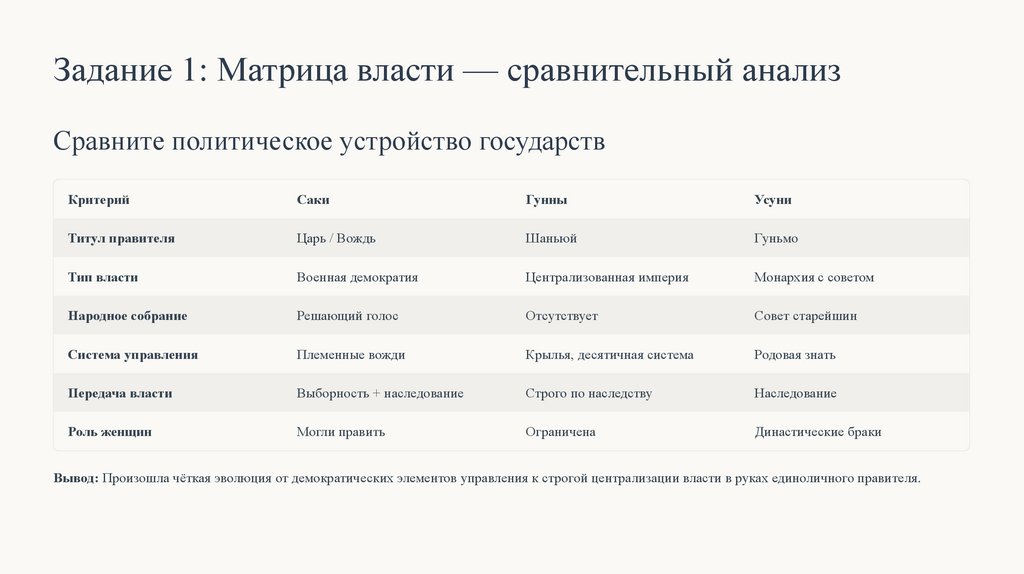 Вывод: Произошла чёткая эволюция от демократических элементов управления к строгой централизации власти в руках единоличного правителя.
