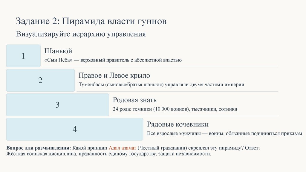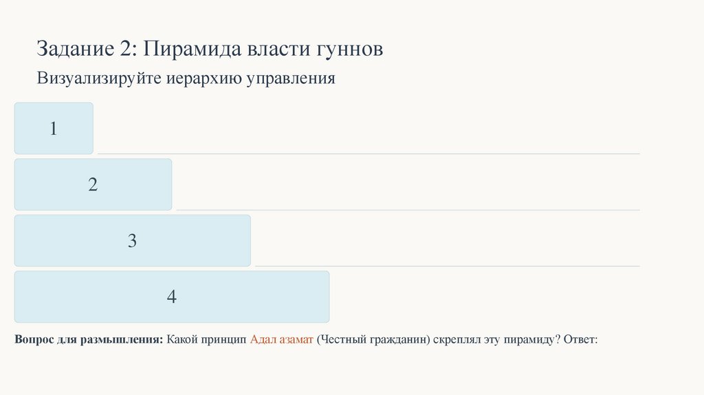 Задание 2: Пирамида власти гунновВизуализируйте иерархию управления