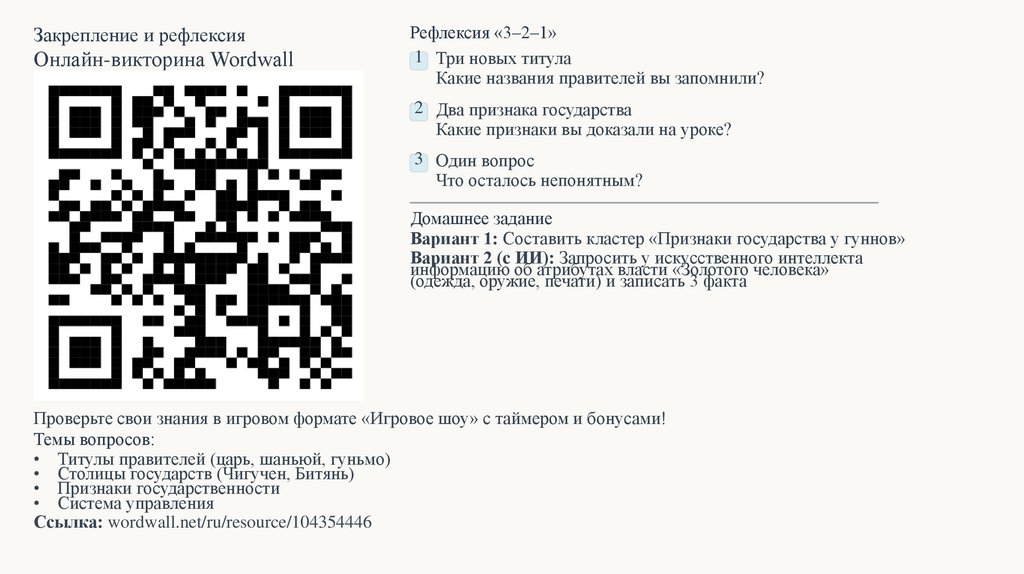 Закрепление и рефлексияОнлайн-викторина Wordwall