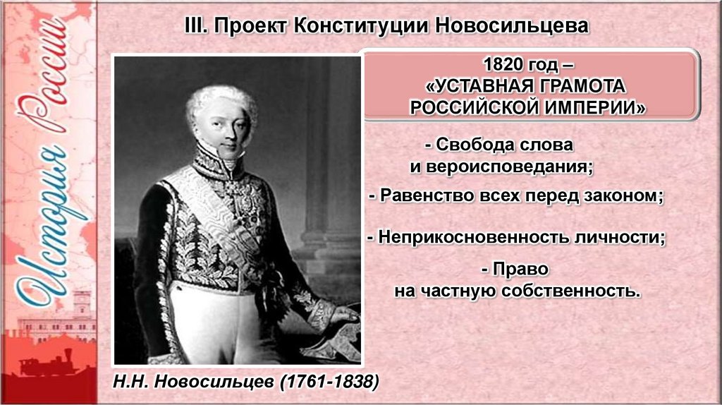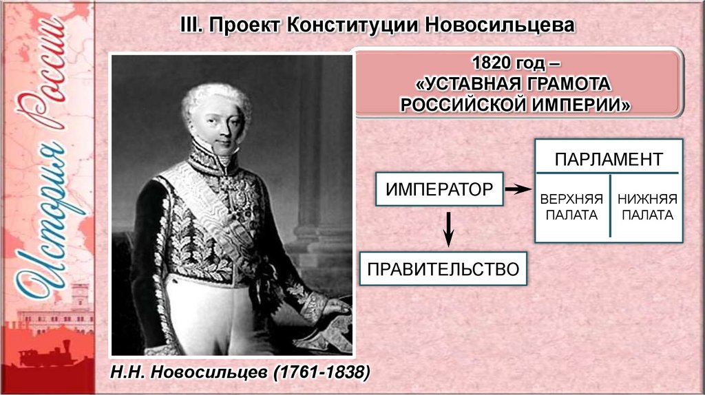III. Проект Конституции НовосильцеваГосударственный деятель, близкий