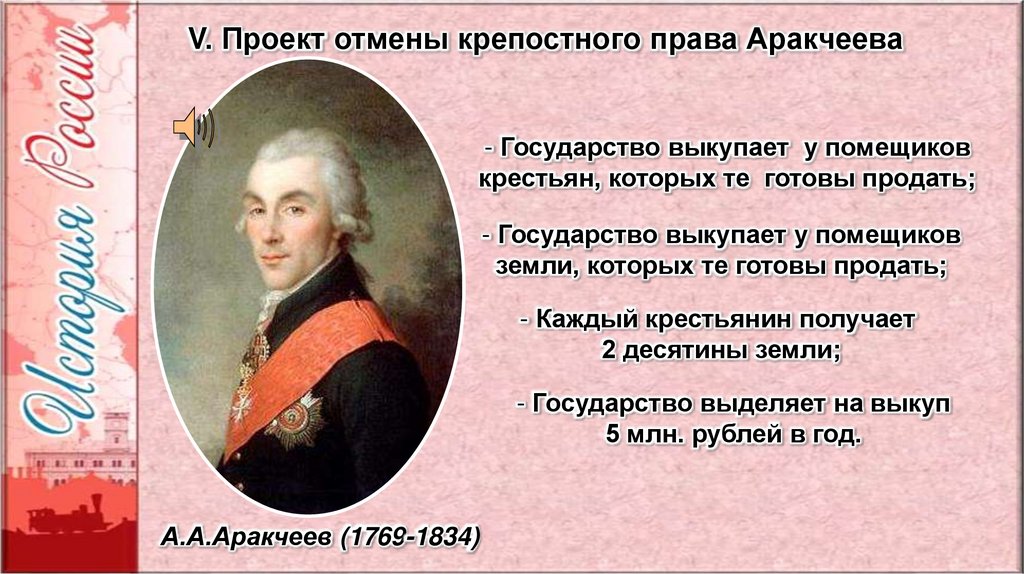V. Проект отмены крепостного права Аракчеева- Государство выкупает у помещиков