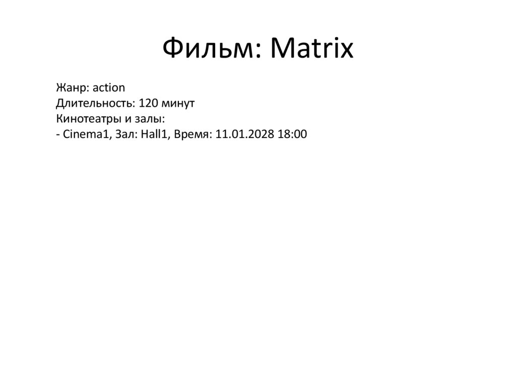- Cinema1, Зал: Hall1, Время: 11.01.2028 18:00
