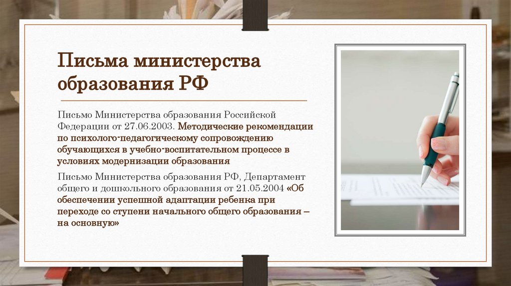 Письмо Мионобрнауки РФ от 26.02.2016, 28.04.2016, 24.05.2017 «О
