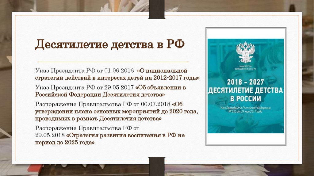 Десятилетие детства в РФУказ Президента РФ от 01.06.2016 «О национальной