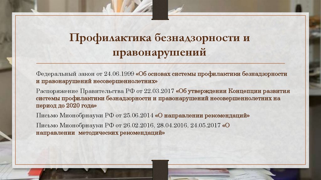 федеральный закон «Об основах системы профилактики безнадзорности и