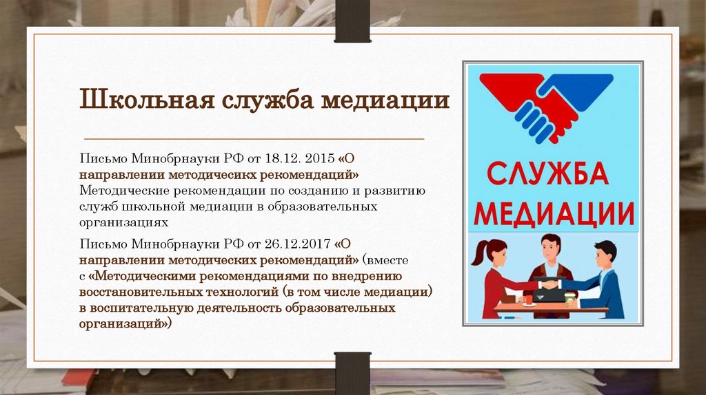 Школьная служба медиацииПисьмо Минобрнауки РФ от 18.12. 2015 «О