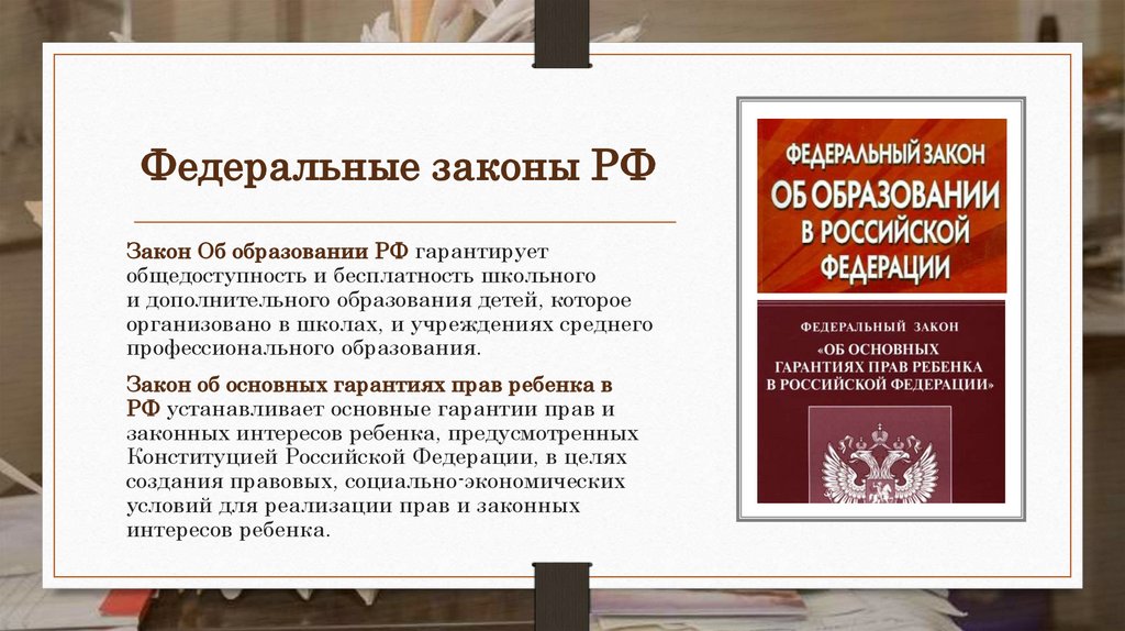 Федеральные законы РФЗакон Об образовании РФ гарантирует