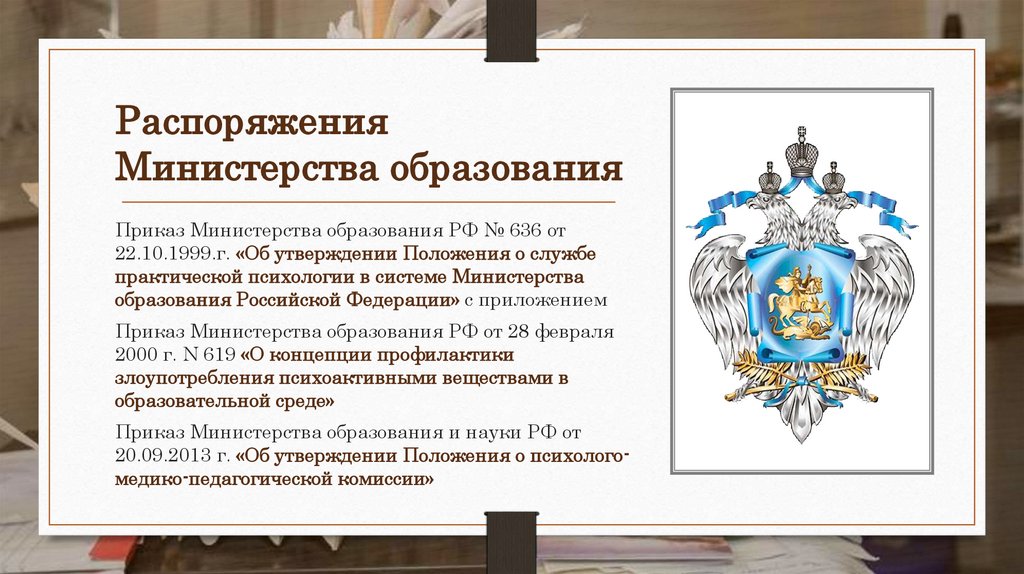 1. Нормативно-правовое обеспечение психологической службы в образовании
