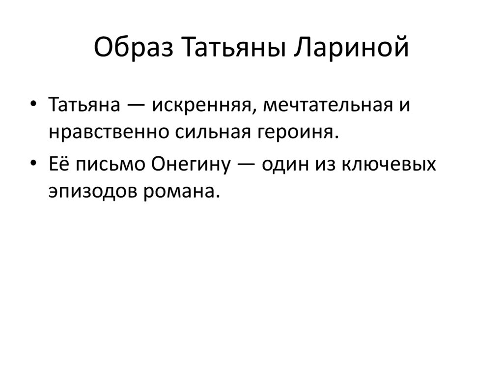 Образ Татьяны Лариной• Татьяна — искренняя, мечтательная и