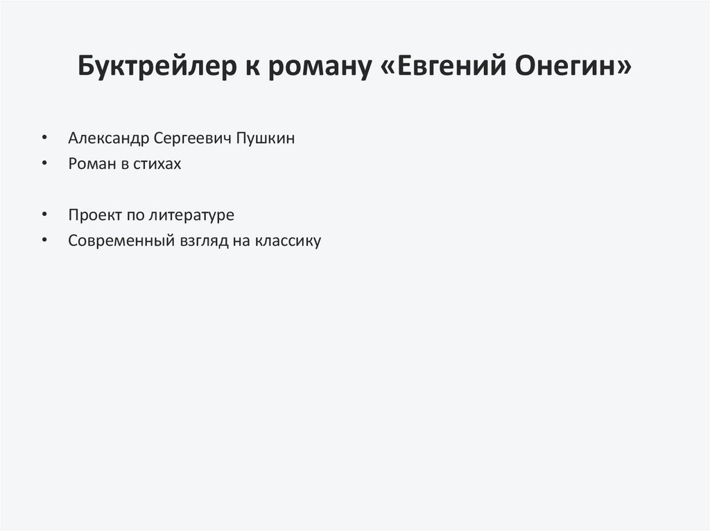 Буктрейлер к роману «Евгений Онегин»Александр Сергеевич Пушкин