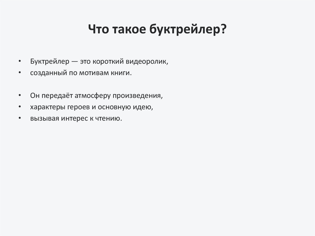 Что такое буктрейлер?Буктрейлер — это короткий видеоролик,