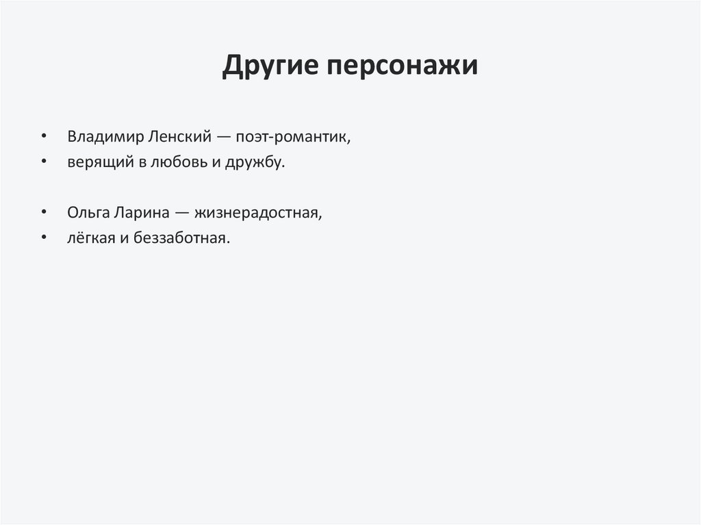 Другие персонажиВладимир Ленский — поэт-романтик,