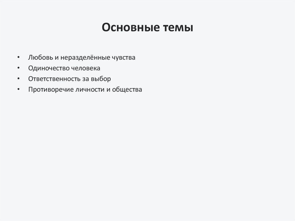 Основные темыЛюбовь и неразделённые чувства
