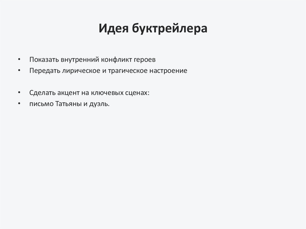 Идея буктрейлераПоказать внутренний конфликт героев