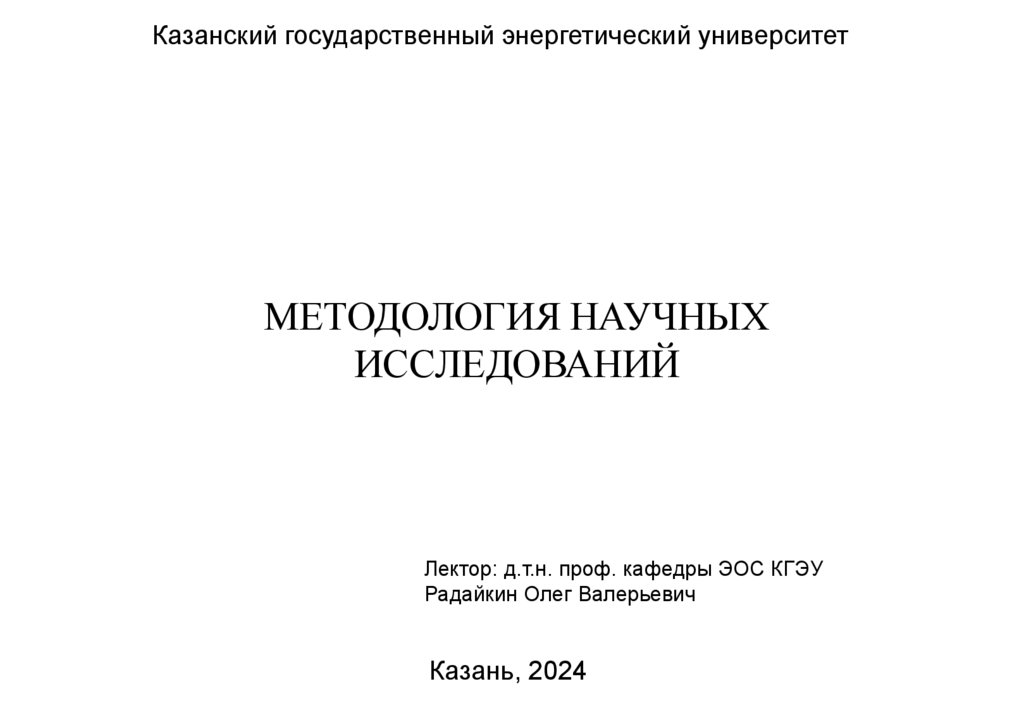 Казанский государственный энергетический университетМЕТОДОЛОГИЯ НАУЧНЫХ