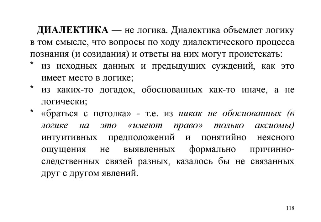 ДИАЛЕКТИКА — не логика. Диалектика объемлет логикув том смысле, что вопросы по ходу диалектического процесса