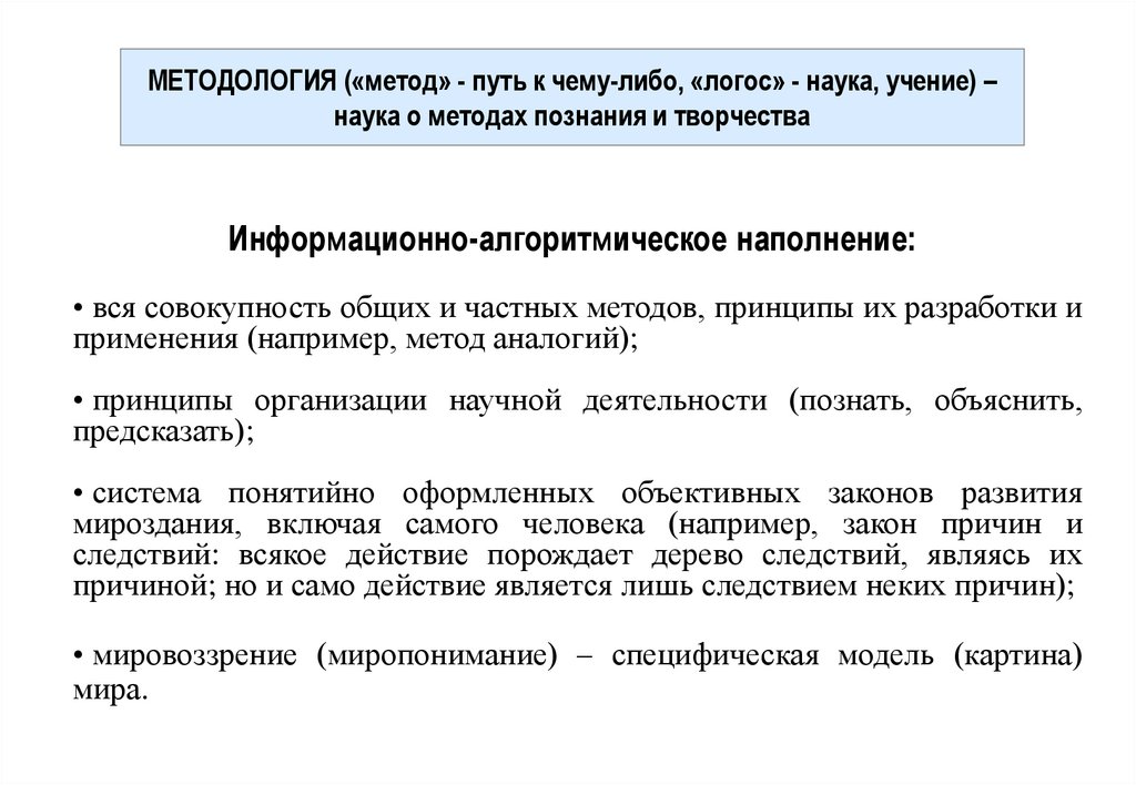 МЕТОДОЛОГИЯ («метод» - путь к чему-либо, «логос» - наука, учение) –наука о методах познания и творчества