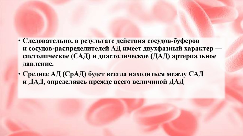 • Среднее АД (СрАД) будет всегда находиться между САД