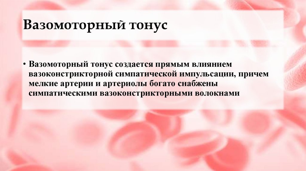 • Сосудистый тонус покоя поддерживается благодаря постоянному поступлению