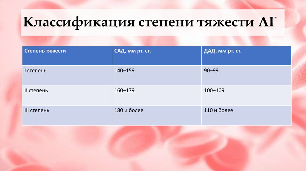 Классификация степени тяжести АГСтепень тяжести
