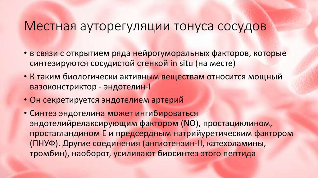 Местная ауторегуляции тонуса сосудов• в связи с открытием ряда нейрогуморальных факторов, которые