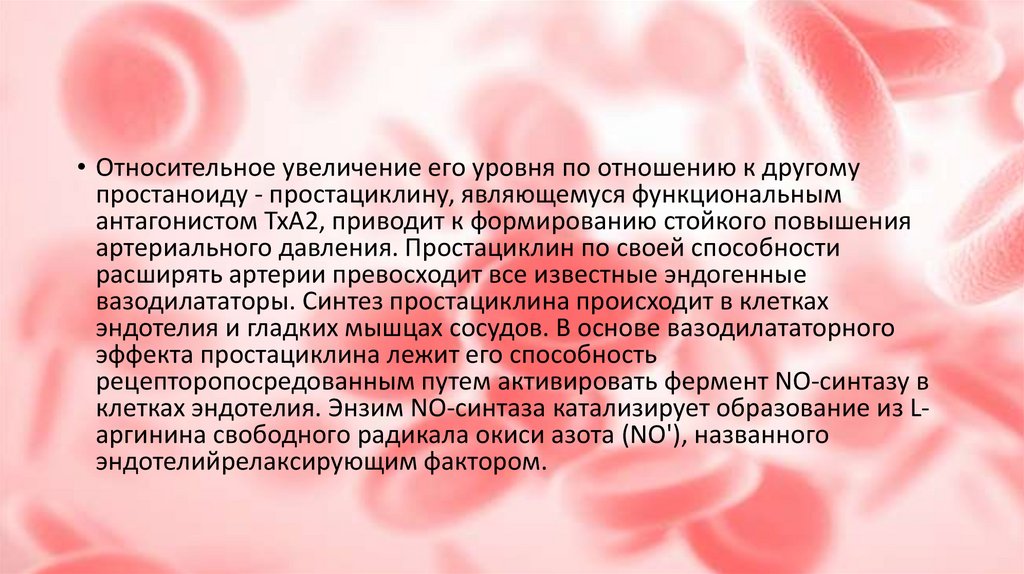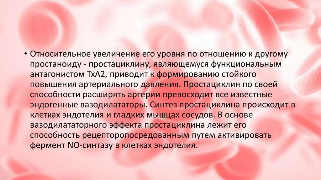 повышения артериального давления. Простациклин по своей